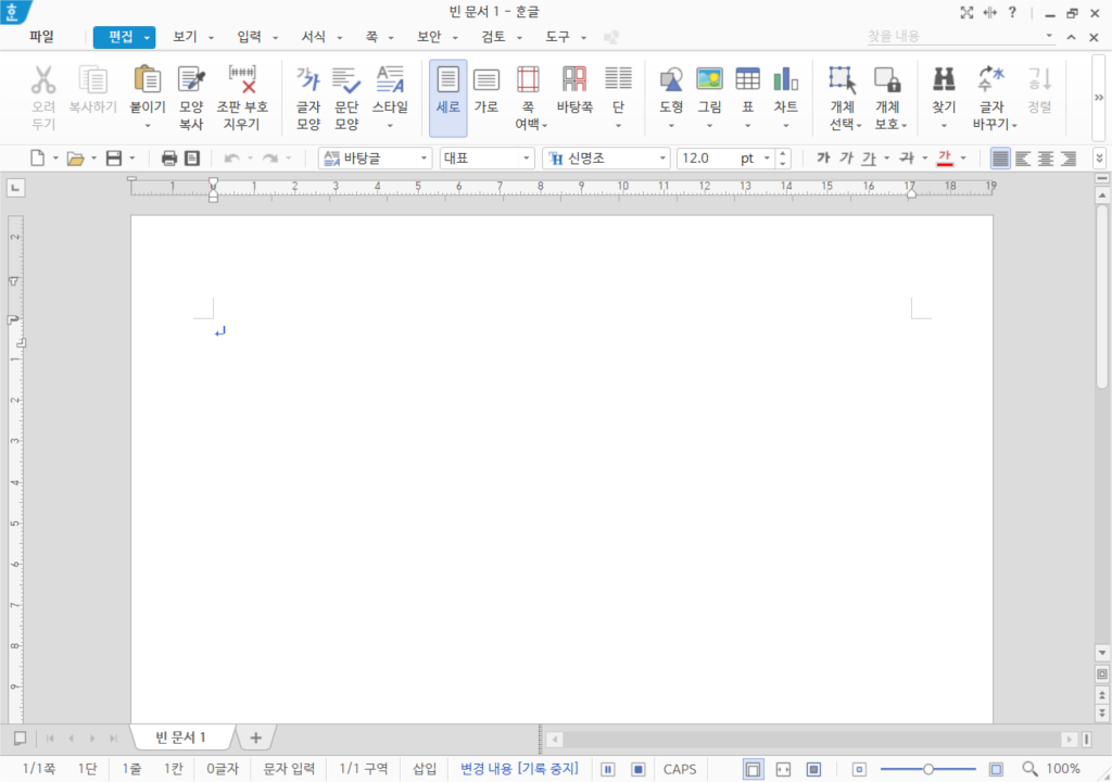 새로 한글을 실행하거나 [새 문서], [새 탭]을 실행하여 새로 만드는 모든 빈 문서의 문단은 처음에 [바탕글] 스타일로 지정되어 있습니다.